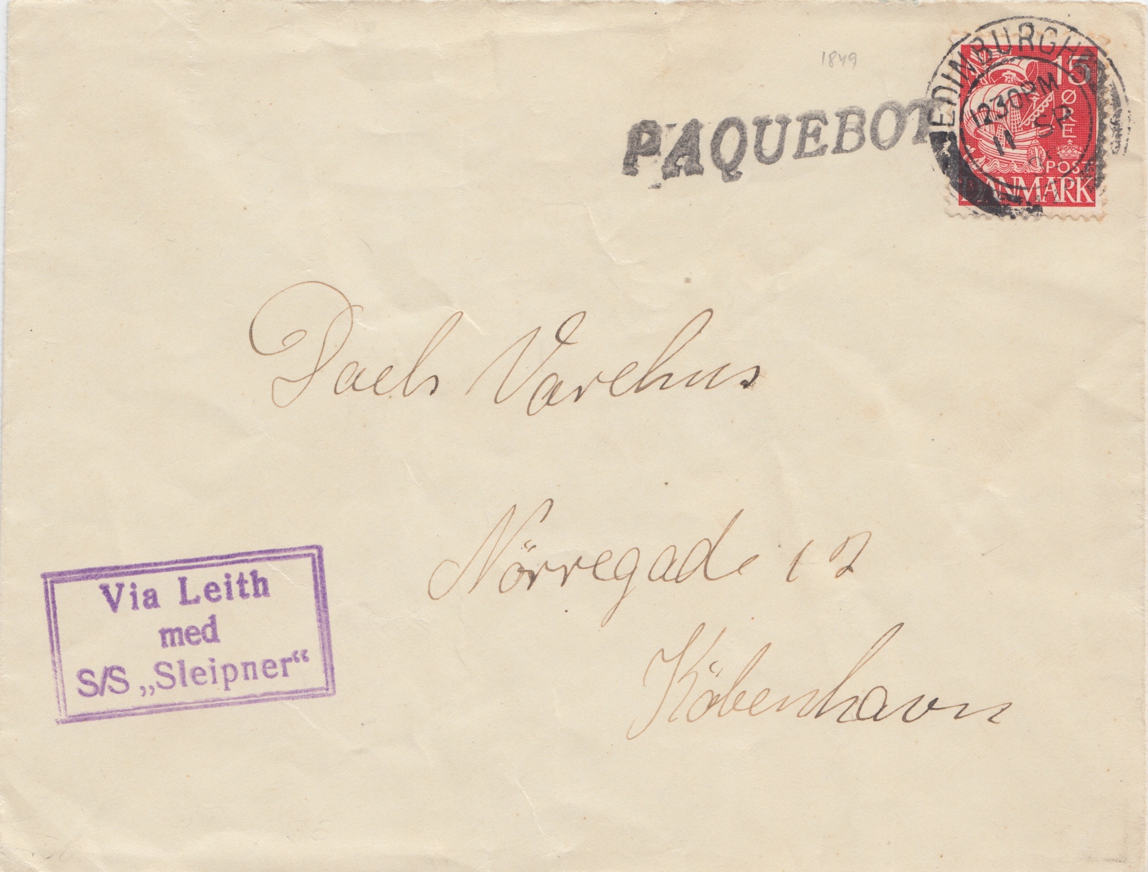 | DG125 Via Leith med S/S "Sleipner" violet ink Edinburgh PAQUEBOT cancel. Only known used between 26.01.1933 and 11.09.1935 |